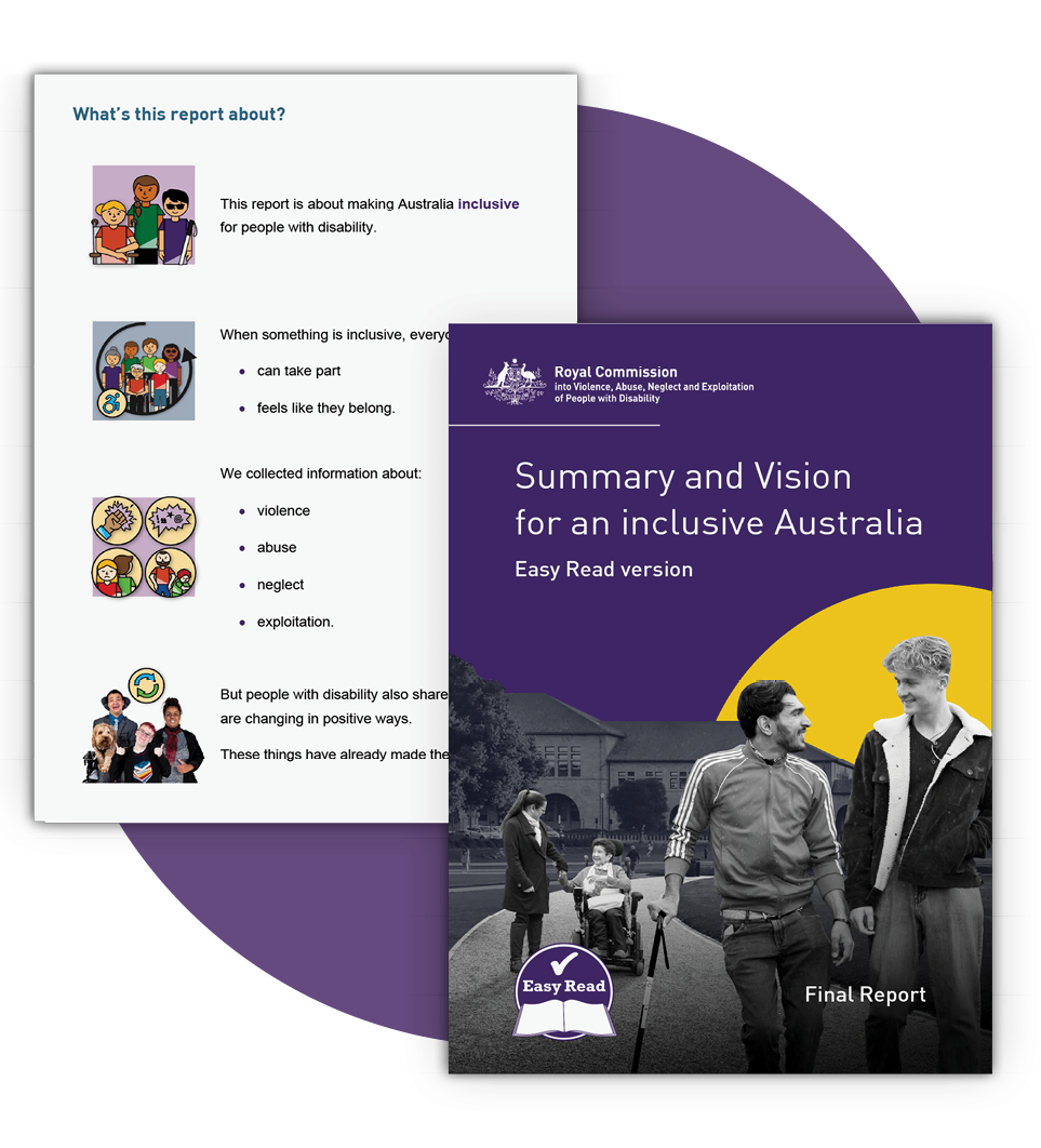 Australian community and suitable for Easy Read. They include people with disability,